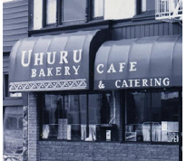 In 1987, the Uhuru Movement opened Uhuru Bakery Café and Catering in Oakland. The Uhuru Bakery quickly became an extremely popular institution serving healthy comfort foods to rave reviews from food critics and the public. The Bakery Café was forced to close in December 1989 due to damage from three mysterious fires in the building that the landlord refused to repair.